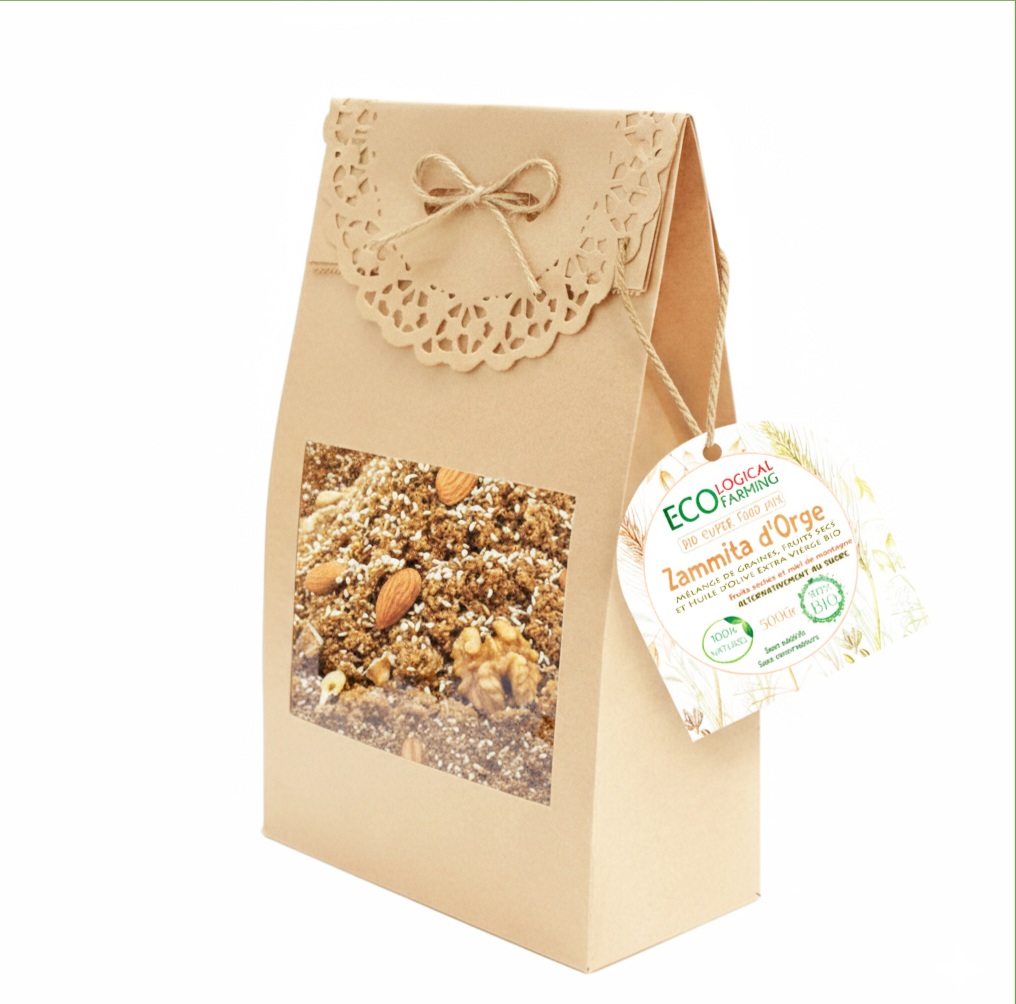 Notre ZAMMITA 4 est une création à base d’orge, graines,fruits secs, huile d’olive et miel BIO.